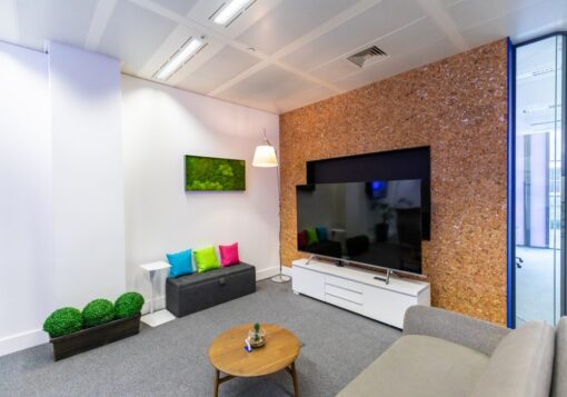 • Mūsdienu industriālais stils: Korķa sienas flīzes izskatās lieliski kopā ar industriālo interjeru – to unikālā tekstūra piešķir telpai dziļumu un vizuālu interesi.