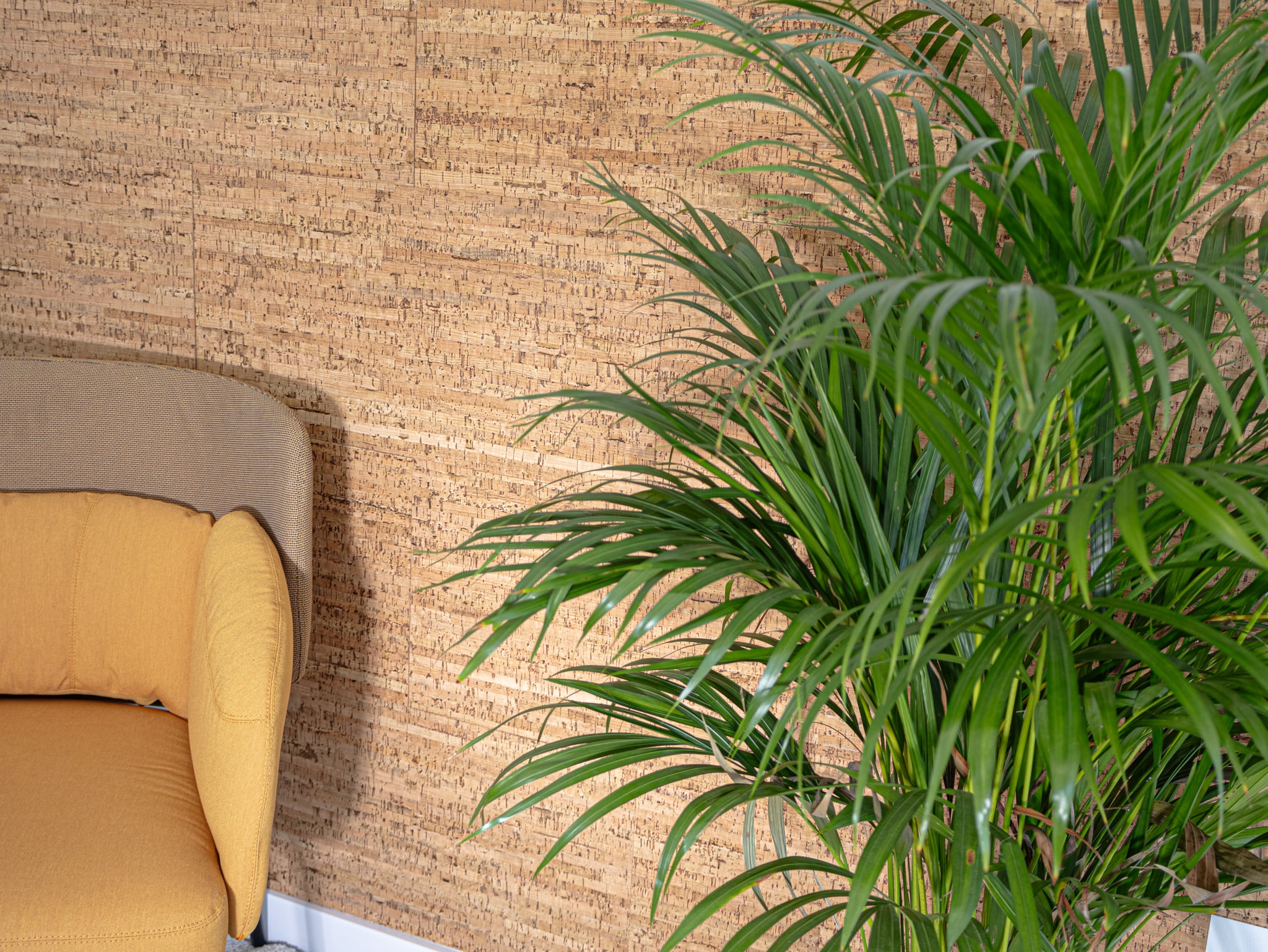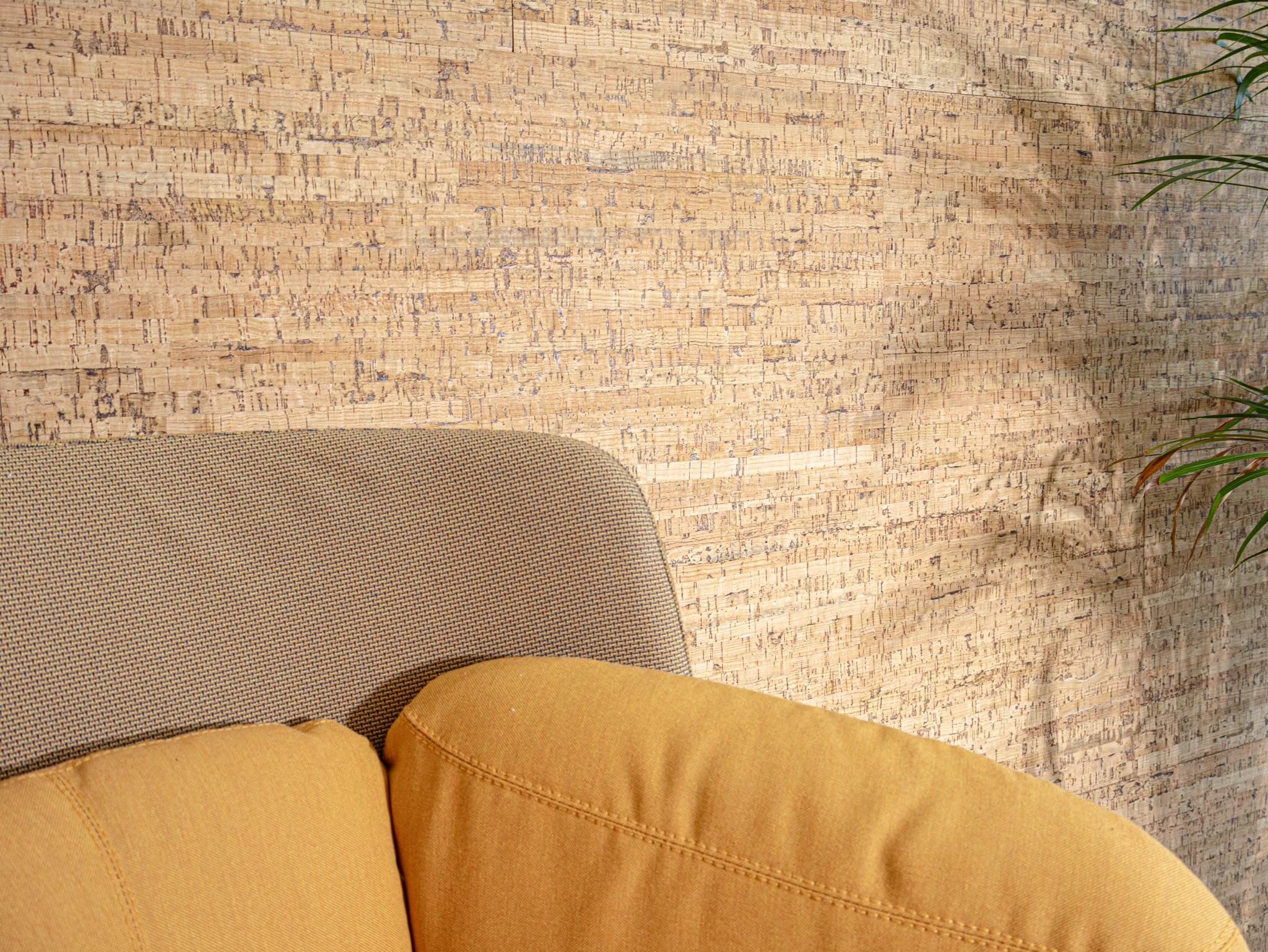 • Teksturēti audumi: Dekoratīvās korķa sienas flīzes labi sader ar teksturētiem audumiem, piemēram, linu, džutu un vilnu, radot mājīgu un aicinošu atmosfēru.